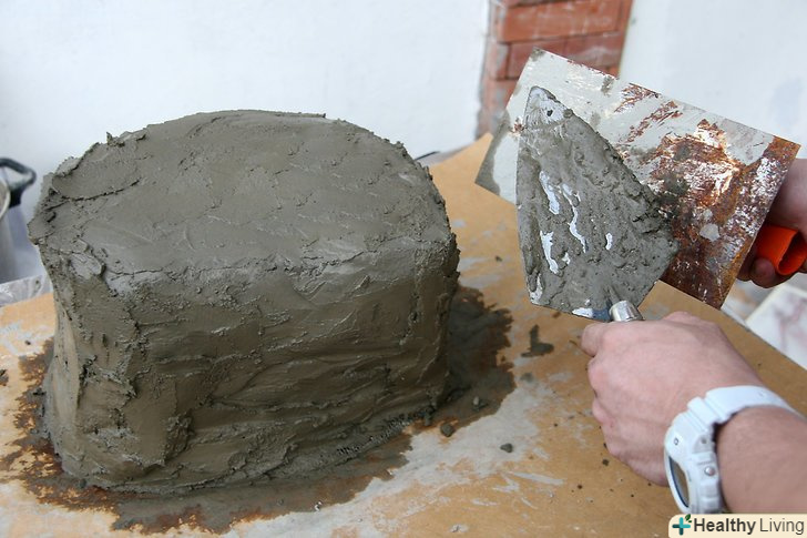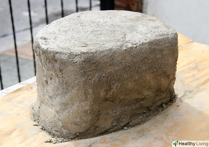 Виготовте форму. Так як бетон досить важкий, для виготовлення штучного каменю вам знадобиться форма. Виготовте з піни певну масу розміром з камінь і обмажте її 5-7 сантиметровим шаром бетону. Завдяки цьому штучний камінь на вигляд і дотик не можна буде відрізнити від справжнього, нехай він і буде набагато легше. Далі необхідно загорнути форму в дротяну сітку або в сітку з арматурної сталі, щоб вологий бетон міг до чогось пристати на вертикальній поверхні і надати загальну міцність зчеплення з бетоном.- Розведіть бетон . У відрі руками або кельмою, або в тачці за допомогою лопати, або в шматку фанери совковою лопатою, або в цементно-змішувальній машині. Надані варіанти вказані в порядку збільшення кількості бетону. Змішайте 3 частини чистого, промитого піску з 1 частиною цементу. Для додаткової міцності можете додати в бетон невелику кількість скловолокна. Меблевий клей, зола і мікрокремнезема також використовуються в професійному виготовленні каменів. Додайте до густої пасти воду і дуже довго розмішуйте перед використанням. Якщо ваші м'язи ще не ниють, значить, ви ще не досить розмішали бетон.