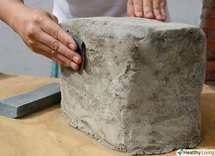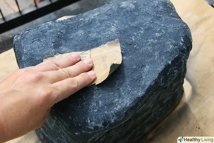 Очистіть бетон. зачекайте як мінімум три повних дні з моменту висихання, перш ніж приступити до цієї стадії. Зачекайте більше, якщо вам нікуди поспішати. Візьміть наждачний папір і відшліфуйте весь камінь, щоб прибрати з бетону грубі краю. По закінченню ваш камінь буде таким же гладким, як і справжній.