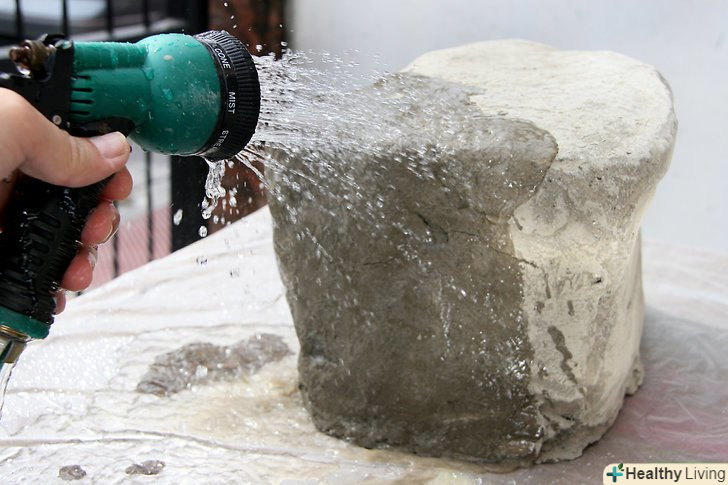 Дайте бетону висохнути. щоб повністю висохнути, бетону потрібно місяць, а через один тиждень він висохне на 75%. Якщо на ранніх стадіях висихання залишити камінь під прямим сонцем, то на ньому утворюються помітні тріщини. Замочіть його у воді, щоб мінімізувати тріщини і забезпечити належне висихання.