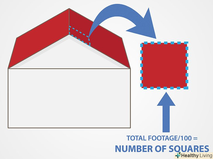 Визначте кількість квадратів. Покрівельники вимірюють поверхню в квадратах по 10 квадратних метрів. Щоб дізнатися кількість квадратів, розділіть загальну площу на 10.