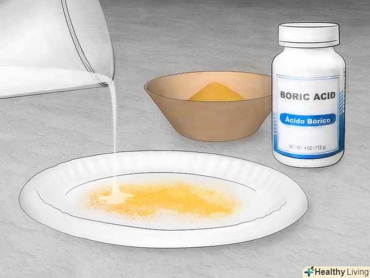 Зробіть пастки з борної кислоти і цукру. такі пастки легко зробити, і вони надзвичайно ефективні. Вам знадобляться кілька невеликих аркушів картону (по одному на кожну пастку), кукурудзяний сироп (або будь-яке солодке і липке речовина) і порошок борної кислоти.- Змішайте 2 столові ложки кукурудзяного сиропу і 2 столові ложки борної кислоти.