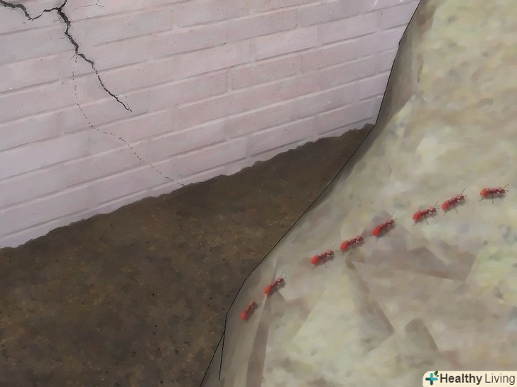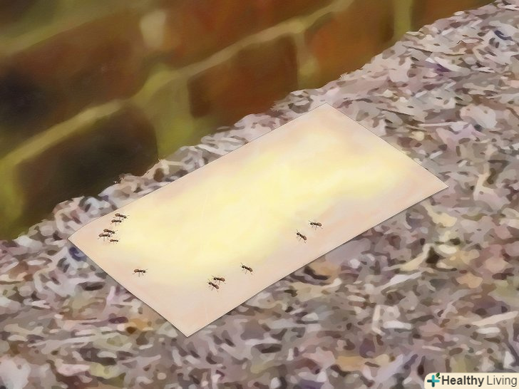 Зробіть загороджувальну лінію, яку мурахи перетинати не будуть. є деякі речовини, запах яких мурахи так не люблять, що навіть не підходять до них близько. Проведіть загороджувальну лінію навколо вашого будинку, на порогах вхідних дверей і на підвіконнях, щоб мурахи не потрапили всередину вашого будинку. Проведіть лінію через кожні кілька днів, щоб мурахи не прорвалися через діри в цій лінії. Ось речовини, з яких можна зробити загороджувальну лінію: [9]- Кориця