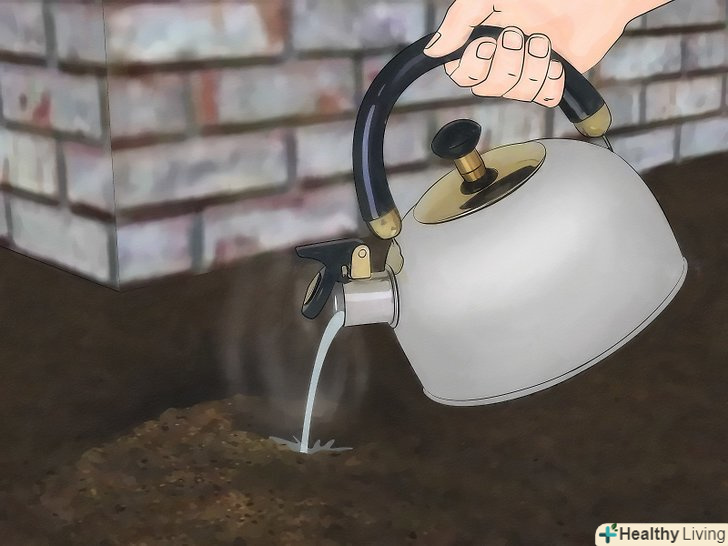 Вилийте окріп в гніздо (через знайдений вами вхід). окріп вб'є сотні мурах і знищить ціле гніздо. Якщо гніздо досить велике, вилийте в нього кілька каструль окропу.- Якщо гніздо знаходиться у вашому будинку, окріп може пошкодити саму будову. В цьому випадку замість окропу використовуйте суміш засобу для миття посуду з водою. Ви також можете надіти довгі гумові рукавички і вишкребти гніздо у відро, а потім втопити мурах.