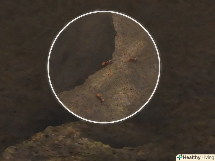Простежте за мурахами, щоб визначити, де знаходиться їх гніздо. якщо мурахи атакують ваш будинок навіть після застосування природних інсектицидів і пасток, вам необхідно знищити мурашине гніздо. Для визначення місця розташування гнізда простежте за колоною мурах. Залежно від виду мурах гніздо може бути відкритим, прихованим під землею або перебувати безпосередньо в будинку.- Маленькі чорні мурахи – найбільш часті гості житла людини. Ці мурахи подорожують у довгих і повільних колонах, а їх гнізда можна знайти в затишних місцях по всьому двору.