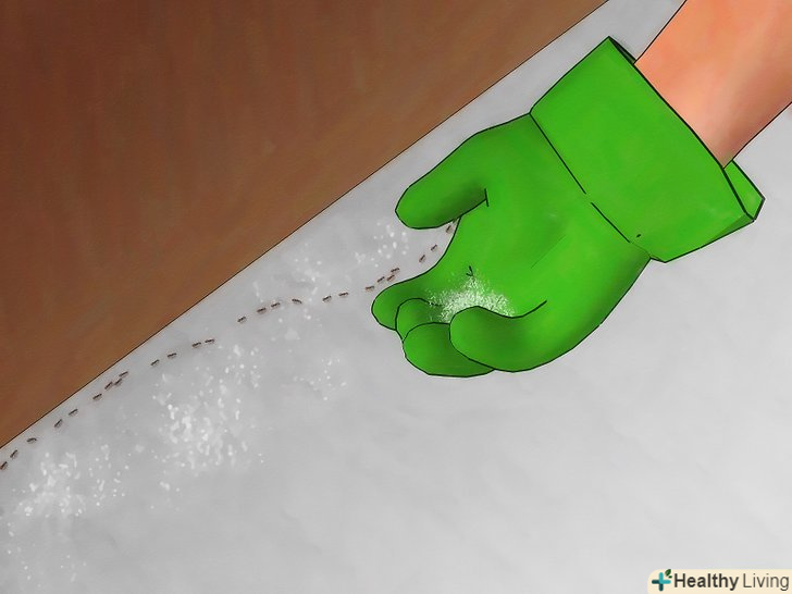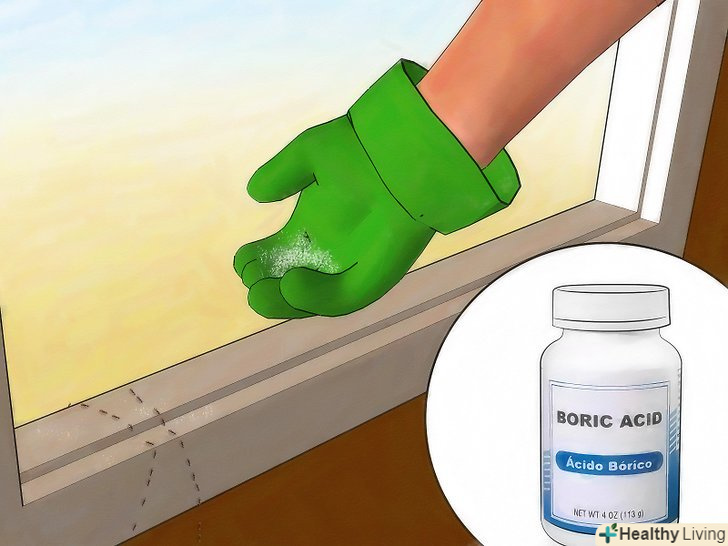 Використовуйте борну кислоту. проковтнувши борну кислоту, мурахи отруяться і здохнуть. Борна кислота також пошкоджує зовнішній скелет комах (аналогічно кизельгуру). Борна кислота - це порошок білого або синього кольору, який потрібно насипати в місцях появи мурах, наприклад, уздовж плінтусів або на підвіконнях. [4]- Борна кислота не є токсичним пестицидом, але вона шкідлива для людини або домашніх тварин. Намагайтеся не використовувати борну кислоту там, де грають ваші діти і Домашні тварини, а також в кухонних шафах і місцях зберігання продуктів харчування.