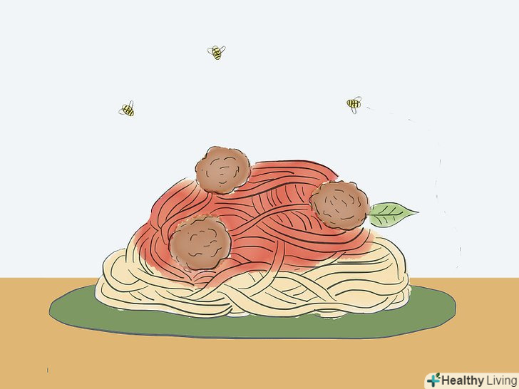 Слідкуйте за харчовими продуктами. оси люблять їжу і солодкі напої. Бджолам точно захочеться поповзати по цукрових булочках або по печінці під час пікніка. [8]- На вулиці зберігайте їжу в контейнерах до і після їжі - тим менше апетитних запахів, що залучають комах.
