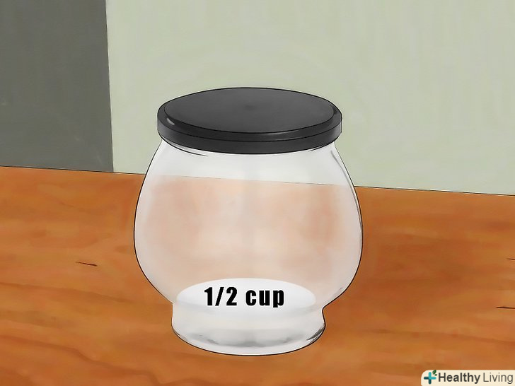 Помістіть півсклянки (120 мілілітрів) солодкої суміші в банку. [10] можна використовувати банку будь-якого розміру, аби вона мала кришку. Підійде як скляна, так і пластикова банка, але кришка при цьому повинна бути пластиковою. Наприклад, можна використовувати стару банку з-під варення, соусу або арахісової пасти. Закрийте банку пластиковою кришкою.