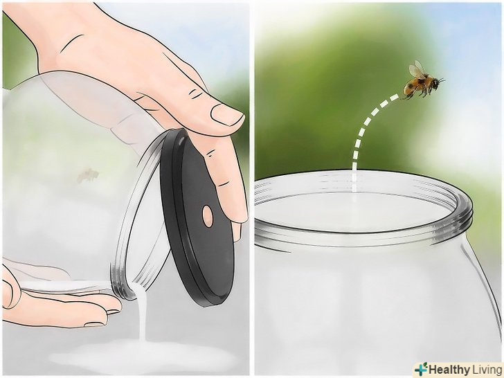 Коли бджола потрапить в банку, винесіть її на вулицю. [12] зачекайте, поки бджола залетить в банку. Після цього вона може потонути в солодкій суміші. В цьому випадку відкрийте кришку і вилийте суміш разом з комахою на траву хоча б в десяти кроках від будинку. Поверніться додому і вимийте банку.