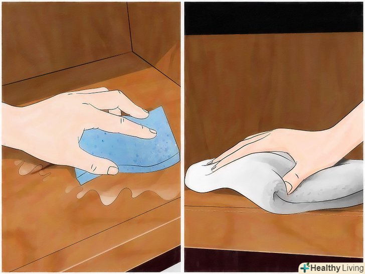 Вимийте шафа. тепер, коли ви все дістали з шафи, пора очистити його з верху до низу, щоб позбутися від яєць молі, які все ще можуть бути там.- Мильним або оцтовим розчином протріть підлогу і стінки шафи. Змочіть губку в розчині і вимийте стінки, щоб зняти всі яйця. Особливо добре промийте щілини і тріщини.