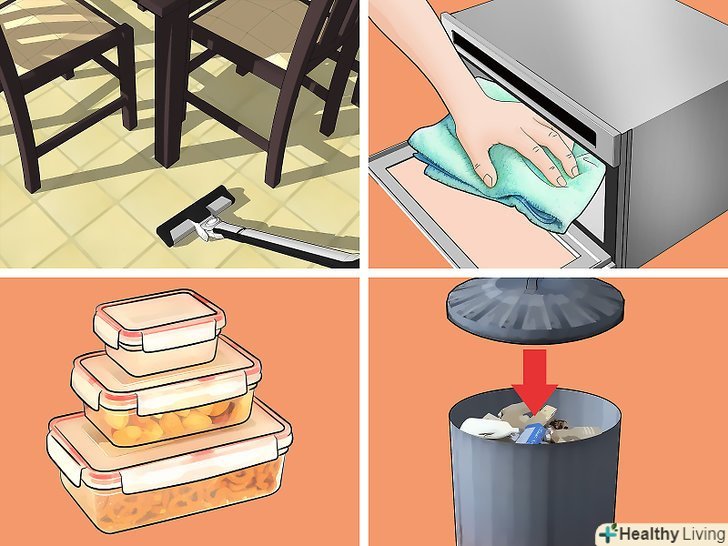 - Пилососьте і прибирайте сміття кілька разів на тиждень. Те, що по-Вашому не є джерелами їжі, може бути розкидано по всій вашій квартирі. Пилососьте кожні 2-3 дні. [1]