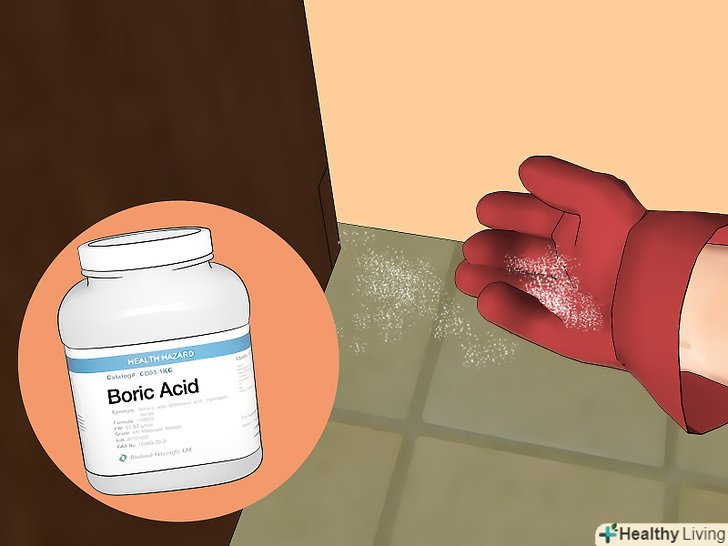 Розсипте навколо шафок і побутової техніки борну кислоту. таргани з'їдять її і загинуть. Оскільки для людини борна кислота отруйна, її не слід використовувати в місцях приготування їжі.- Ви також можете використовувати його на кухні та в їдальні, а потім прибрати його після того, як ви вб'єте більшу частину тарганів. [2]