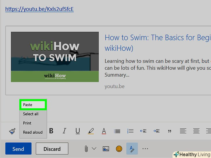 Вставте адресу відео в тіло листа.для цього клацніть правою кнопкою миші (або двома пальцями) по тілу листа і в меню виберіть «Вставити».