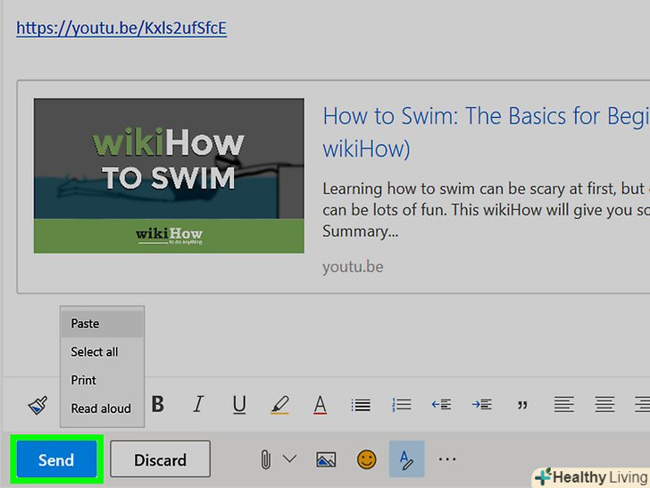 НатиснітьНадіслати. ця кнопка знаходиться в нижньому лівому кутку вікна з листом. Лист буде надіслано одержувачу; коли він відкриє лист, він повинен клацнути по вікну відеопрогравача в нижній частині листа, щоб відтворити відео.