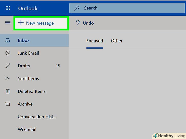 Натисніть+створити.ця опція знаходиться у верхній лівій частині сторінки Outlook, трохи вище вмісту поштової скриньки. Відкриється вікно створення листа в правій частині сторінки.