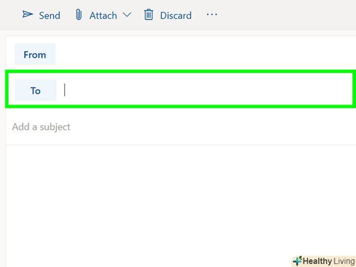 Введіть адресу електронної пошти одержувача.зробіть це в полі "Кому" у верхній частині вікна з листом. Ця адреса повинна бути адресою поштового сервісу Gmail або Outlook.- Поштовий сервіс Outlook надає домени "hotmail», «live»і "outlook".