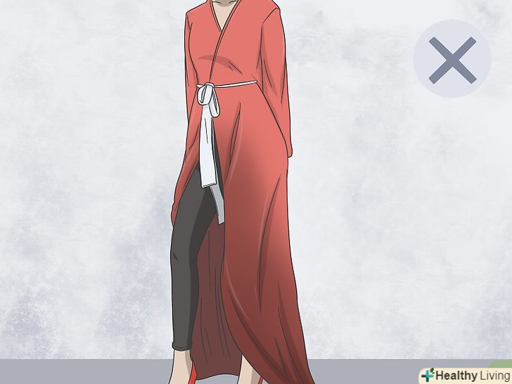 Не носіть вузькі спідниці. спідниці, які перешкоджаю вільному руху колін і ніг, також можуть бути небезпечними. Якщо спідниця буде занадто вузькою, людина не зможе правильно переступати сходинки. [12]- Якщо носіння вузької спідниці не можна уникнути, то, спускаючись або піднімаючись по сходах, спершу поставте обидві ноги на сходинку, а вже потім переступайте на наступну.