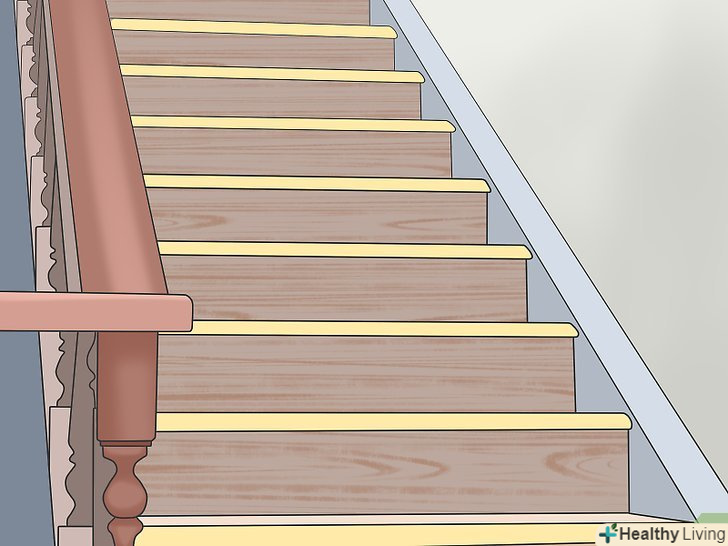 Слідкуйте за зносом покриття ступенів. сходинка не повинна бути зношеною, гладкою або слизькою, інакше це може призвести до нещасного випадку. Для зменшення ймовірності падіння встановіть на сходинки нековзні поверхні. Вони можуть бути виготовлені з гуми, металу або протиковзкої фарби. [9]- Покриття накладаються або на всю сходинку цілком, або лише на її передній край.