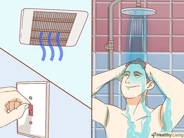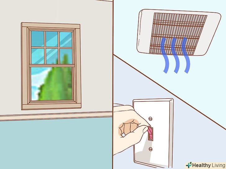 Включайте у ванній кімнаті вентилятор, коли приймаєте ванну або душ. Вентилятор дозволяє дуже ефективно знизити вологість у ванній. Включайте його, коли напускаєте воду в ванну або душ, і не вимикайте протягом хоча б п'яти хвилин після миття, щоб позбутися від пари. По можливості намагайтеся не вимикати вентилятор до тих пір, поки ванна не очиститься від пари. [13]- Найкраще одночасно відкрити вікно і включити вентилятор.