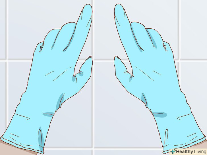 Використовуйте гумові рукавички щоразу, коли маєте справу з цвіллю. не торкайтеся цвілі голими руками. Якщо для видалення цвілі ви використовуєте оцет або бору, підійдуть звичайні побутові гумові рукавички. Однак для роботи з відбілювачем знадобляться рукавички з натуральної гуми або полівінілхлориду. [17]- Знімайте рукавички відразу ж після того, як закінчите чистку, щоб не розносити спори цвілі по всьому будинку. [18]
