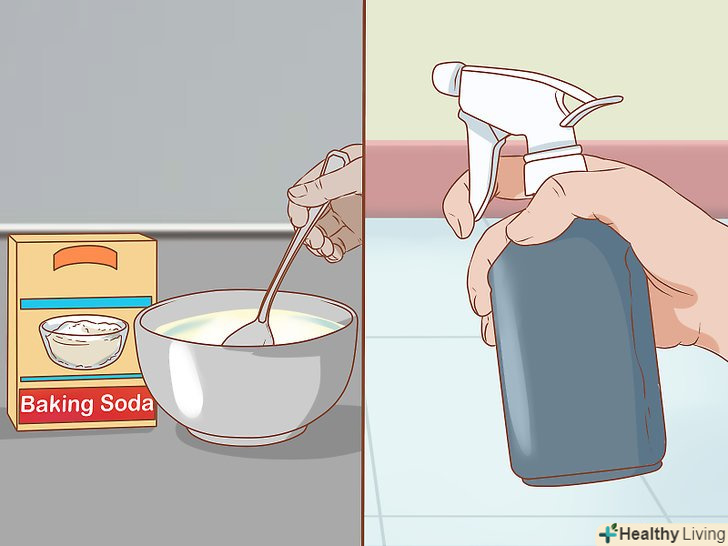 Приготуйте розчин білого оцту. це безпечне і нетоксичне засіб прекрасно підходить для того, щоб видалити цвіль з різних поверхонь. Залийте оцет прямо в пульверизатор. Можна не розводити його водою, так як оцет найбільш ефективний в нерозбавленому вигляді. Немає необхідності змивати оцет після того, як ви нанесете його на поверхню. [1]- Хоча запах оцту досить неприємний, він зазвичай вивітрюється протягом 1-2 годин. Можна відкрити вікно або включити вентилятор, щоб швидше позбутися від запаху.