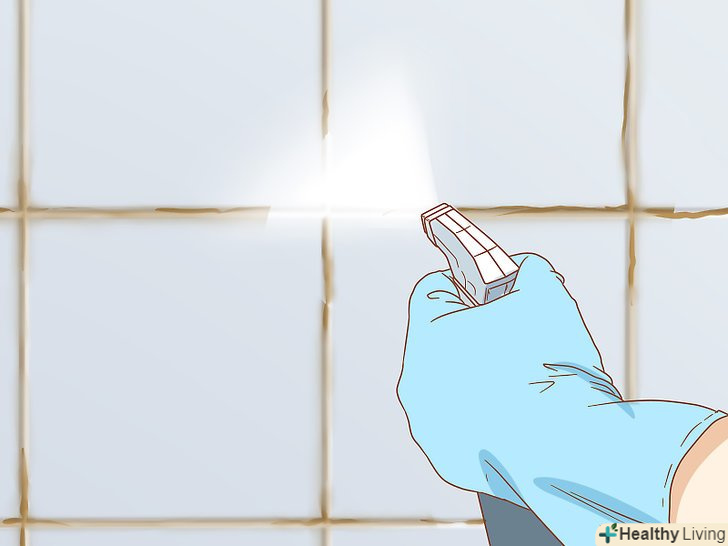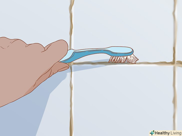 Поскребіть цемент або замазку зубною щіткою. візьміть стару зубну щітку і поскребіть нею забиті цементом або замазкою стики, щоб очистити їх від цвілі. При цьому промивайте зубну щітку під проточною водою, щоб змити цвіль і запобігти поширенню її спор по всій ванній. [8]- Заведіть окрему зубну щітку для очищення ванної від цвілі, щоб не розносити її суперечки по всьому будинку.