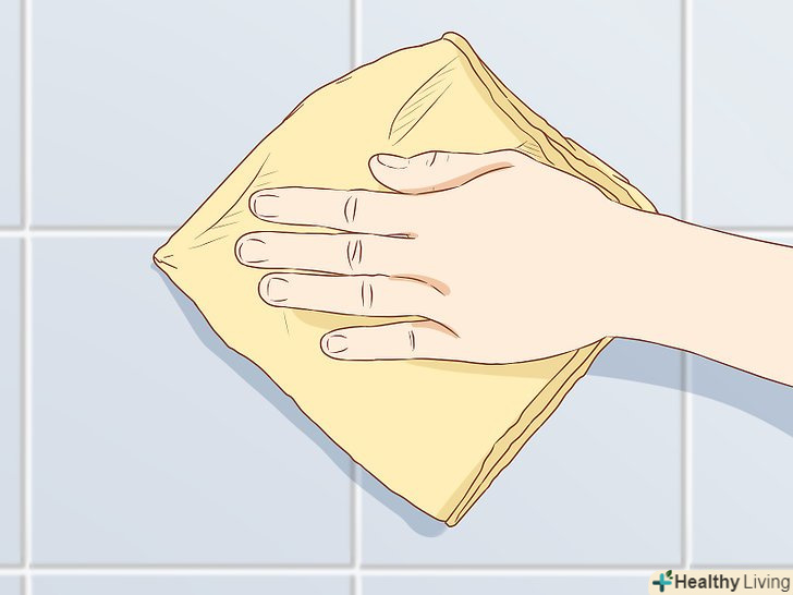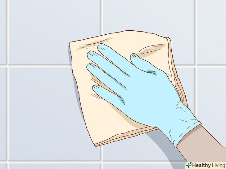 Витріть оброблену поверхню чистою ганчіркою. видаліть з очищеної поверхні залишилася рідина, щоб у ванній було сухо і ви не посковзнулися. Протріть гладку поверхню і забиті цементом або замазкою стики сухою ганчіркою. При цьому ви видалите також цвіль, яка відстала від поверхні після того, як ви потерли її щіткою. [10]- Поміняйте ганчірку, якщо вона сильно намокне.