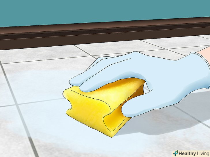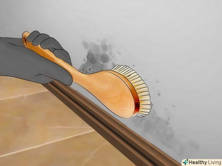 Вимийте уражену ділянку мильною водою. наповніть відро води теплою водою і додайте в нього 2 столових ложки (близько 30 мл) рідини для миття посуду. Розмішайте мило до утворення піни. Змочіть в мильному розчині жорстку щітку і потріть нею уражені цвіллю поверхні. [7] регулярно занурюйте щітку в мильний розчин і тріть поверхню до тих пір, поки вона повністю не покриється піною. Потім сполосніть все водою.- Попередня зачистка цвілі мильним розчином допомагає порушити її поверхневий шар, щоб потім протигрибковий засіб змогло без праці проникнути в коріння цвілі і знищити її.