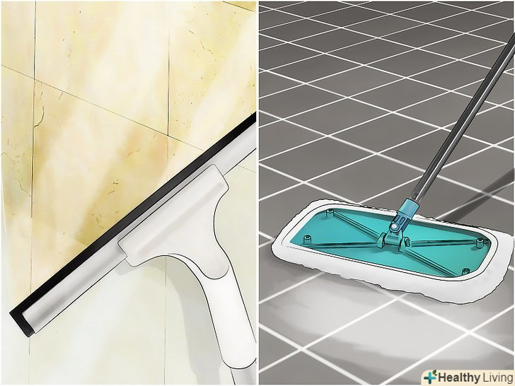 Протирайте душову насухо після купання. душові та ванні кімнати-популярні місця утворення цвілі, так як вони весь час залишаються мокрими. Щоб уникнути проблем, тримайте у ванній гумовий скребок для видалення вологи з гладких поверхонь і просите всіх членів сім'ї і гостей протирати їм стіни після купання.- Також не забувайте щоразу відкривати у ванній вікно або включати вентиляцію після того, як хто-небудь викупається або прийме душ.