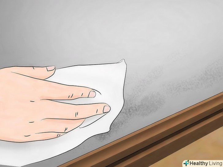 Сполосніть і висушіть поверхні після обробки. щоб прибрати залишкові сліди цвілі і миючого засобу, сполосніть відмиту поверхню чистою водою. Коли все буде змито, протріть поверхню насухо рушником або гумовим скребком. Це видалить надлишкову вологу і запобіжить повторному розвитку цвілі. [10]- Цвіль здатна вирости на вологій поверхні всього за 24 години, тому важливо підтримувати поверхні в сухому вигляді після їх очищення.