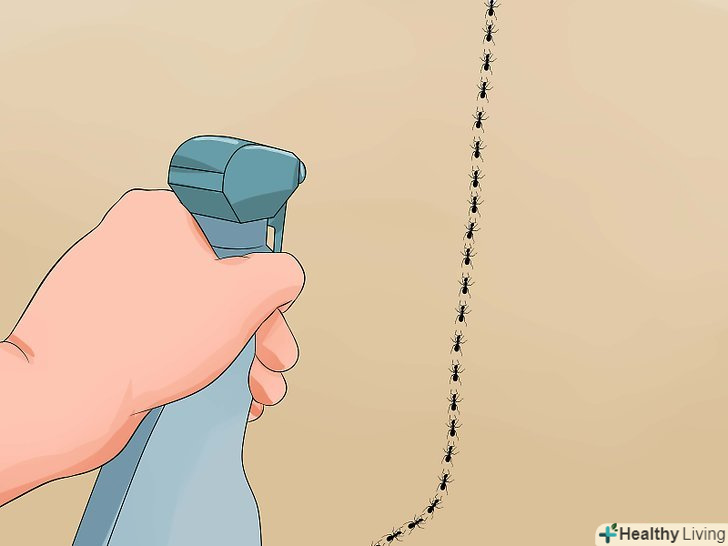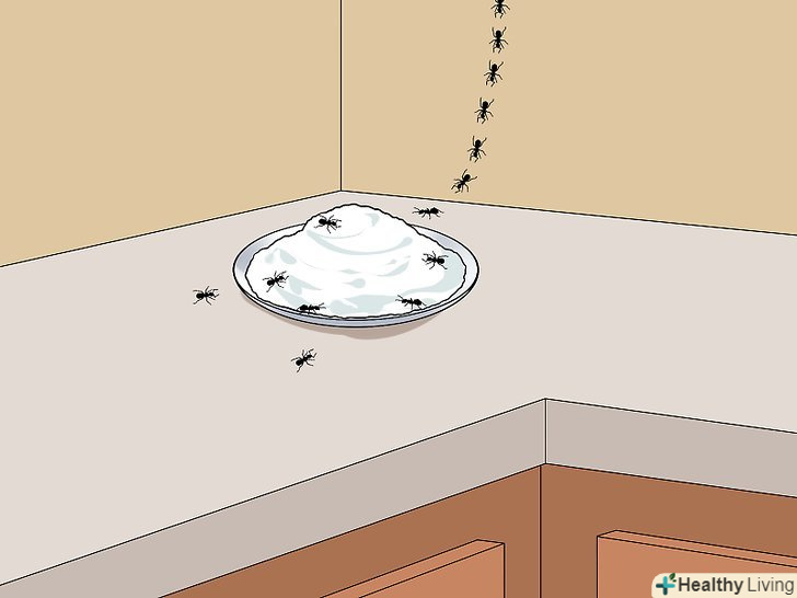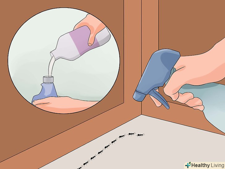 Зітріть сліди мурах. навіть якщо ви виявите в своєму будинку лише одного мурашки, незабаром їх може стати набагато більше. Це пояснюється тим, що мурахи залишають за собою пахучий слід, за яким орієнтуються їх побратими по колонії. [4] щоб знищити залишений мурахою слід, недостатньо просто підмести або вимити підлогу. Слід містить феромони, тому необхідно витерти його дезінфікуючим миючим засобом. Змішайте в пляшці з розпилювачем оцет з водою в пропорції 1: 1 і обприскати розчином всі кухонні поверхні. Особливу увагу приділіть тим місцям, де ви бачили мурах.- Врахуйте, що даний розчин не вб'є тих мурах, які вже проникли в ваш будинок. Він просто зітре залишені ними сліди, і їх побратими не зможуть пробратися в будинок по запаху.