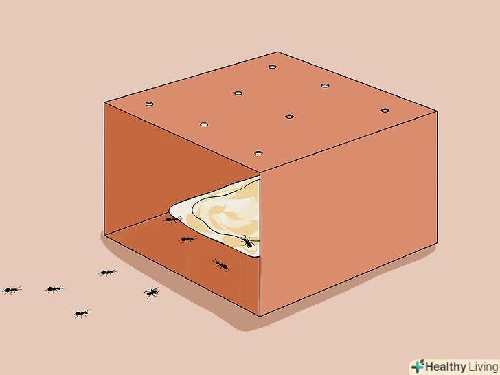 Приготуйте отруєну приманку самостійно. змішайте 1 столову ложку (21 грам) органічної борної кислоти і 1 столову ложку (15 мілілітрів) кленового сиропу (або будь-якої іншої солодкої липкої рідини, наприклад меду або варення). Покладіть суміш борної кислоти і солодкої приманки на скибочку хліба або крекер. Після цього виконайте отвори в невеликій картонній коробці і покладіть в неї приманку. Подібно покупної приманки, запах їжі приверне мурах, а борна кислота вб'є інших членів колонії, коли розвідники доставлять отруєну їжу в мурашник. [21]- Викладайте приманку на ніч, так як мурахи розшукують їжу в темний час доби.