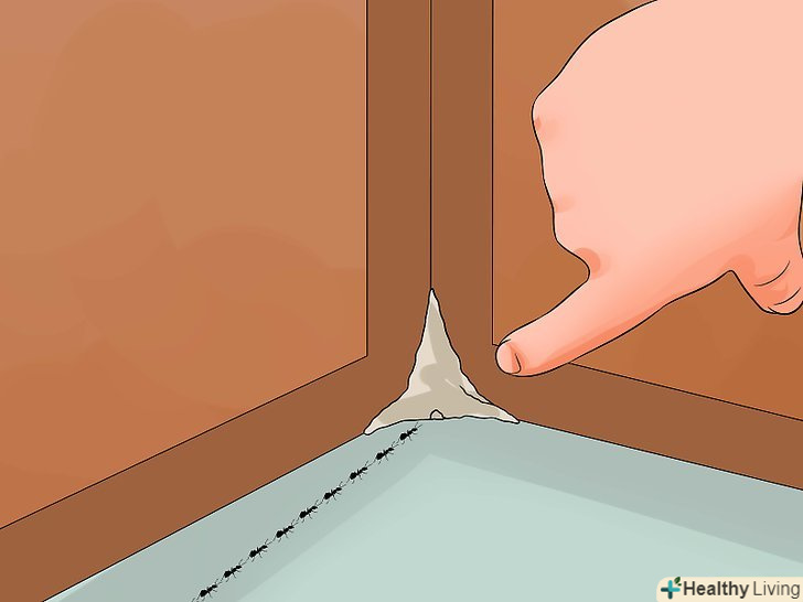 Знайдіть лазівки, через які мурахи проникають в будинок. протягом декількох хвилин поспостерігайте за забралися в ваш будинок мурахами і постарайтеся знайти ходи, через які вони проникають всередину. Перевірте вікна, дверні прорізи та тріщини в підлозі всередині будинку, а також дверні прорізи, вікна, оббивку та освітлення зовні. [3]- Якщо ви виявите, що десь мурахи проникають в будинок і виходять з нього, зосередьте свої зусилля на цих місцях, щоб перекрити доступ непроханим гостям.