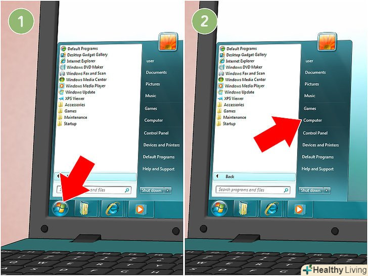 Натисніть "Пуск» - «Комп'ютер»(або "Мій комп'ютер").цей метод працює в Windows 7 і пізніших версіях.- У вікні "Комп'ютер" буде відображений список всіх підключених носіїв інформації.