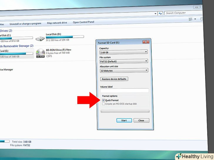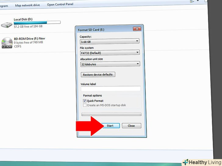 Натисніть "Почати".це призведе до запуску процесу форматування; при цьому весь вміст карти буде видалено.[7]- По завершенні форматування ви отримаєте чисту і готову до роботи карту micro SD.