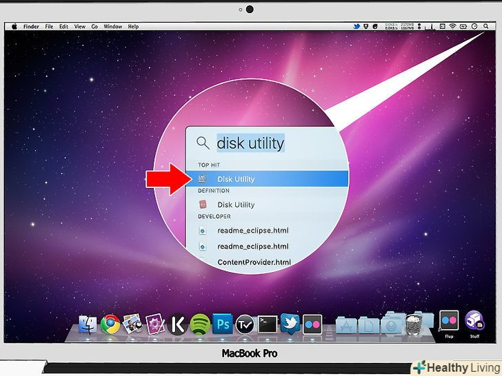 Клацніть по значку пошуку в правому верхньому куті панелі завдань (у верхній частині екрана).знайдіть і запустіть програму "Дискова утиліта".- У вікні "Дискова утиліта" відобразиться список всіх підключених носіїв інформації.