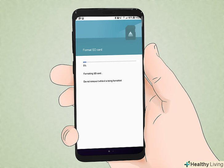 У вікні, погодьтеся на видалення всієї інформації, що зберігається на SD-карті.пристрій приступить до форматування карти micro SD; при цьому весь вміст карти буде стерто.[2]- Можливо, відкриються кілька вікон, в яких вас попросять підтвердити ваше бажання відформатувати карту. Пам'ятайте, що цей процес призведе до видалення всього вмісту карти.