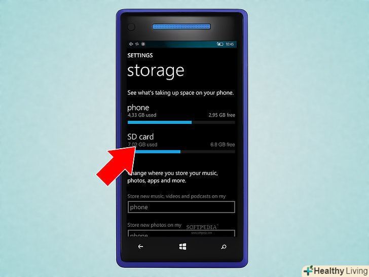 - Якщо ви запустили додаток "Storage Sense«, на екрані знайдіть опцію»SD-карта".[6]