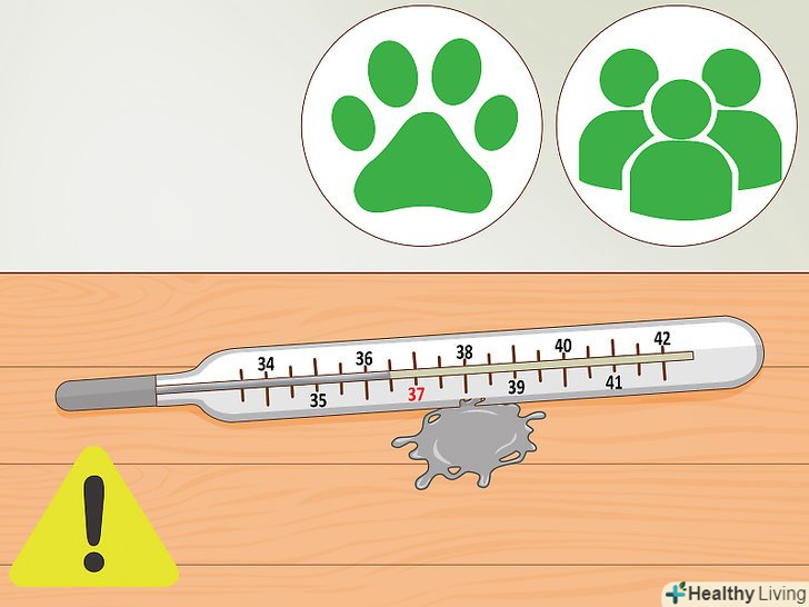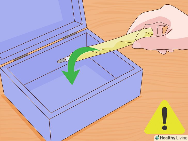 Обережно поводьтеся з пристроями, що містять ртуть. наприклад, якщо у вас Старий скляний термометр з ртуттю, не кидайте його недбало на стіл. Акуратно кладіть термометр на м'яку поверхню і дбайливо зберігайте його. [12]- Наприклад, можна загортати ртутний термометр в м'яку ганчірку і зберігати його в міцній дерев'яній коробці.