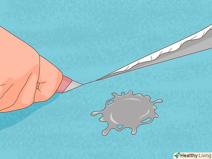 Виріжте ті ділянки килима, які стикалися з рідкою ртуттю. якщо ви виявите ртуть на килимі, виріжте відповідну ділянку (в тому числі підкладку під нього). Акуратно згорніть забруднений ділянку разом з підкладкою, щоб не розплескати ртуть, і помістіть його в сміттєвий пакет. [19]