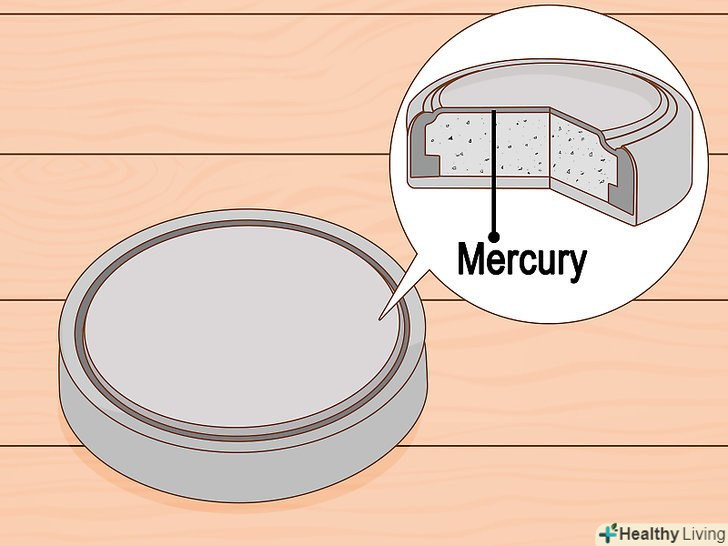Перевірте невеликі батарейки. у більшості батарейок немає ртуті, проте мініатюрні "кнопкові батарейки", які використовуються в наручних годинниках, слухових апаратах, іграшках, кардіостимуляторах та інших невеликих пристроях, все ще містять ртуть. Якщо ви знайдете подібні батарейки, в них, швидше за все, є ртуть. [8]
