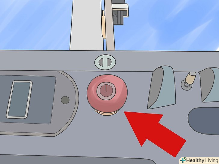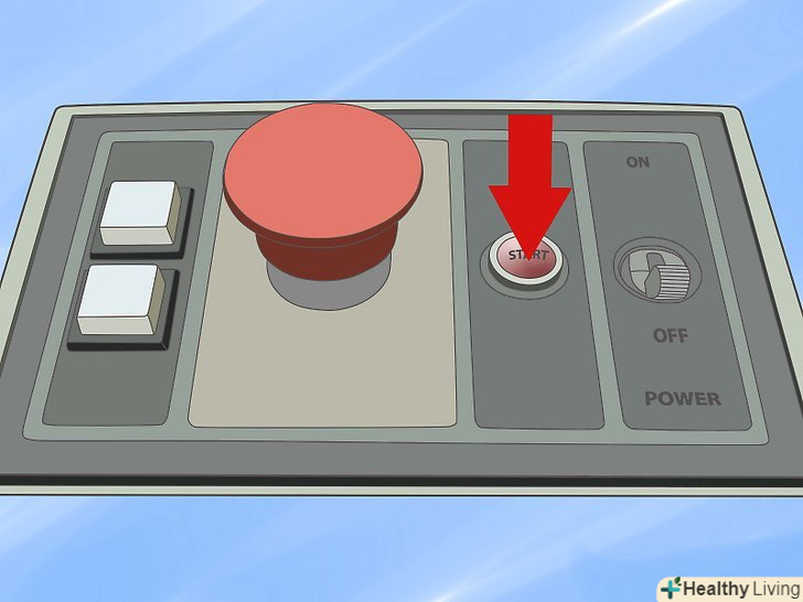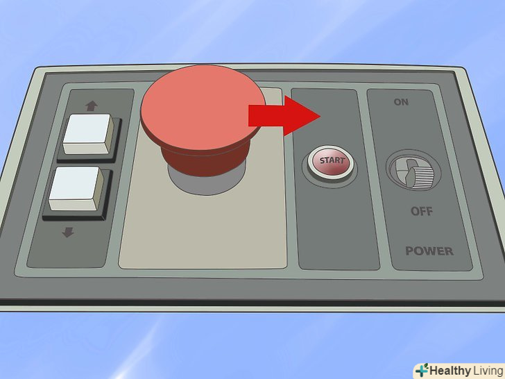 Натисніть кнопку запуску двигуна. зазвичай на ній намальований знак запуску двигуна. Якщо мотор не заводиться при натисканні вимикача, вам потрібно перевірити аварійну кнопку на наземному виносному пульті або головний ключ, щоб переконатися що вони в правильному положенні. Зверніться до керівництва по експлуатації, якщо у вас не виходить завести машину.