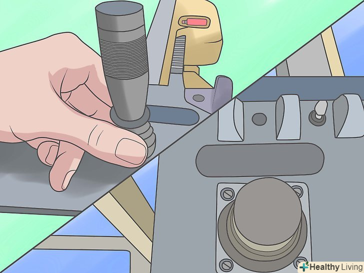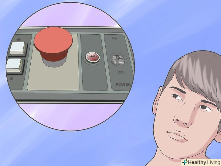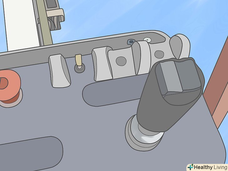 На підлозі платформи знайдіть конструкцію у формі черевика . це важіль управління, в який треба помістити ногу і натиснути на Вимикач носком ноги, щоб запустити управління машиною. Якщо все працює правильно, то двигун повинен дати газ. Більшість підйомників оснащені звуковим сигналом, який сповіщає перехожих, що машина рухається.