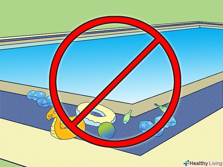 Тримайте територію Басейну в чистоті. будь-які іграшки або інші предмети, що валяються поруч з басейном можуть залучити маленьких дітей. Приберіть будь-які привабливі для дітей предмети з території басейну.