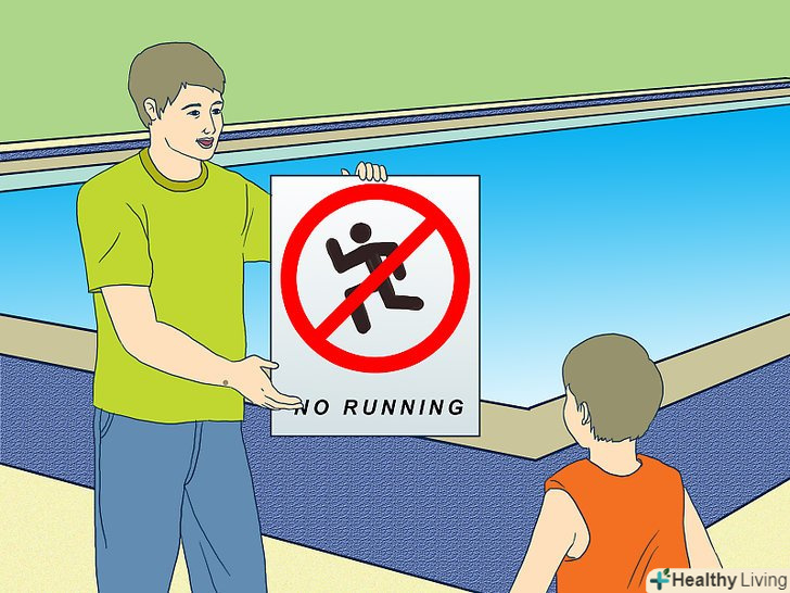 Встановіть правила. Роз'ясніть правила поведінки і техніку безпеки в басейні всім членам сім'ї, наприклад:- Не бігати, не кидати у воду будь-які предмети