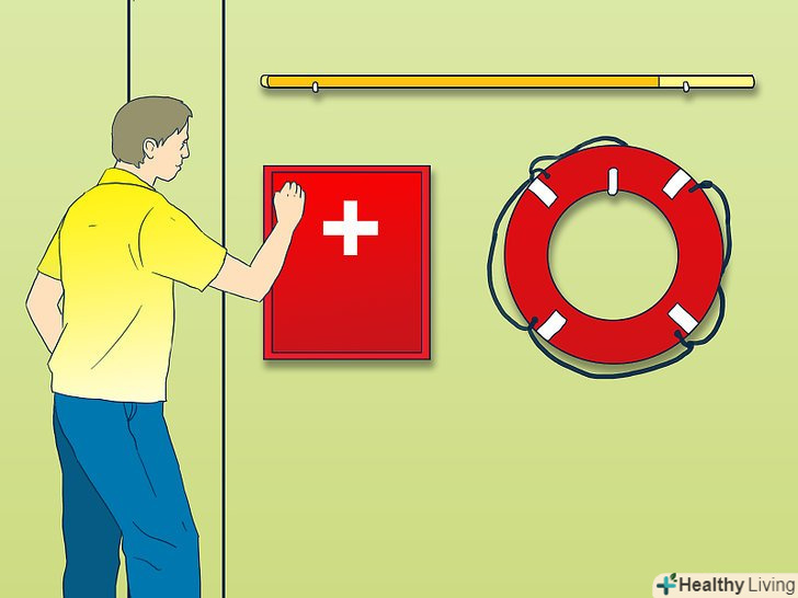 Тримайте під рукою рятувальне обладнання. Аптечка, рятувальні буї, Довга жердина і т.д. повинні бути в зручному і доступному місці (але не доступному для дітей). Важливо вміти надавати першу допомогу. Цьому можна навчитися на спеціальних курсах.