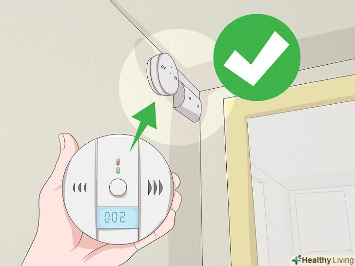 Встановіть на кожному поверсі Детектори оксиду вуглецю (чадного газу). окис вуглецю-це безбарвний і несмачний газ без запаху, який може бути побічним продуктом роботи побутових приладів (таких як Печі, каміни, Обігрівачі, нагрівальні баки води і грилі). Вдихання окису вуглецю призводить до отруєння і навіть смерті, тому так важливо встановити на кожному поверсі детектори, які будуть сигналізувати про перевищення допустимого рівня окису вуглецю в будинку. [3]- Розмістіть Детектори окису вуглецю поруч зі спальнями, щоб ви могли почути сигнал тривоги під час сну.