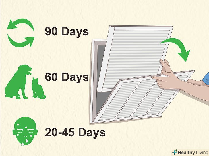 Міняйте фільтри кожні кілька місяців. змініть фільтри, якщо сумніваєтеся в правильній роботі очисника повітря. При проживанні в будинку середніх розмірів їх необхідно міняти кожні 90 днів, але, якщо сумніваєтеся в якості повітря, міняйте фільтри частіше. [6]- Якщо в будинку є собака або кішка, міняйте фільтри кожні 60 днів.
