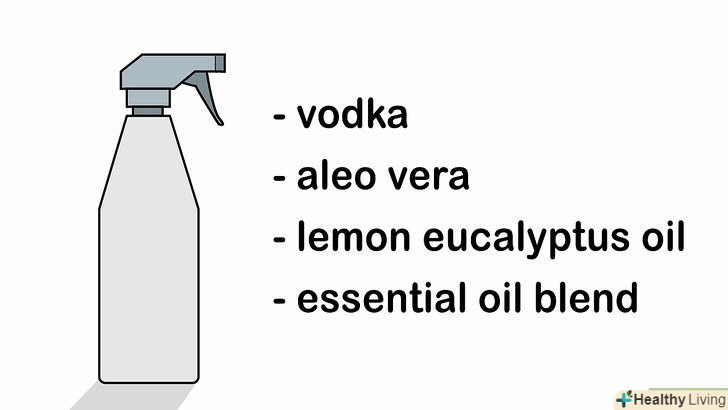Використовуйте засіб на основі горілки від кімнатних мух і плодових мушок. змішайте горілку, сік алое вера, масло лимонного евкаліпта і ефірне масло в аерозольній ємності. Наносите засіб на шкіру або розпилюйте в приміщенні, щоб відлякувати мух.