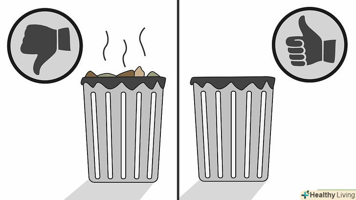 Регулярно спорожняйте сміттєві кошики і відра, щоб запобігти появі комах. вимийте стінки і дно сміттєвого відра або кошика від патьоків соку і залишків різних продуктів на поверхні. [1]- Випорожнюйте і мийте банки і пляшки, перш ніж викидати їх у сміття, щоб випадково не пролити залишки напоїв.