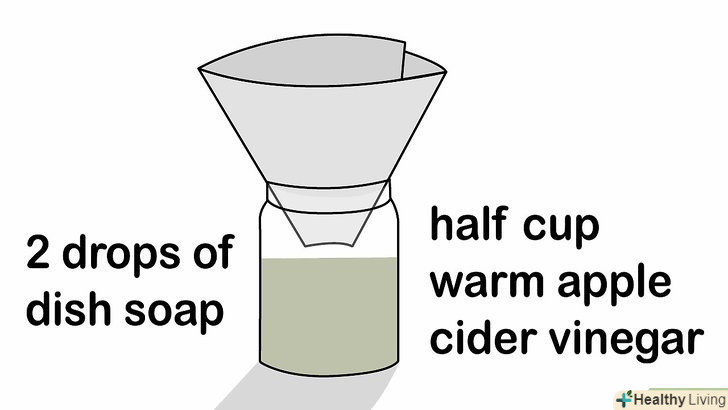 Зробіть кухонну пастку для плодових мушок з воронки. нагрійте півсклянки яблучного оцту і перелийте в пляшку з-під вина або банку. Зробіть воронку в формі конуса з аркуша паперу і зафіксуйте скотчем. Прикріпіть воронку до банку. [5]- Зробіть пастку з банки з фруктами. помістіть на дно банки кілька шматочків перезрілих, майже гнилих фруктів. Накрийте банку поліетиленовою плівкою і зафіксуйте плівку по обідку гумкою. [8]